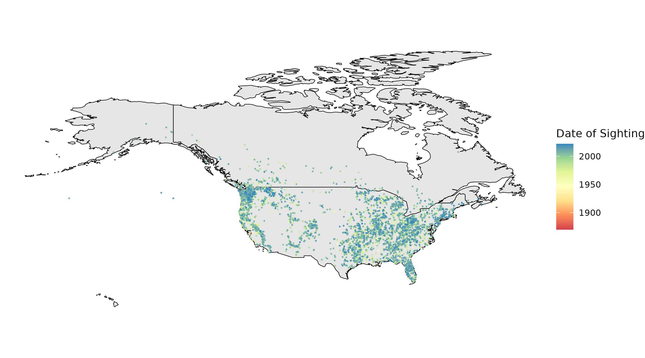 Plot the locations of big foot sightings on a map